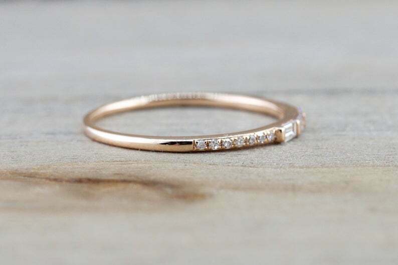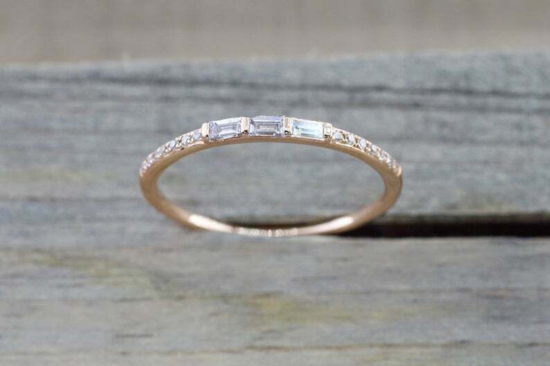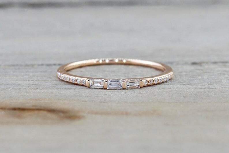 1ct Baguette Cut Diamond Wedding Band 14k Yellow Gold Finish Stackable Promise