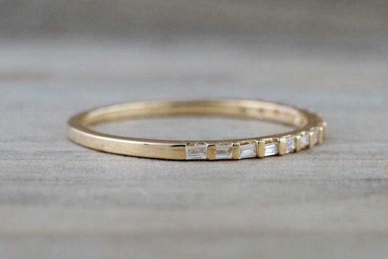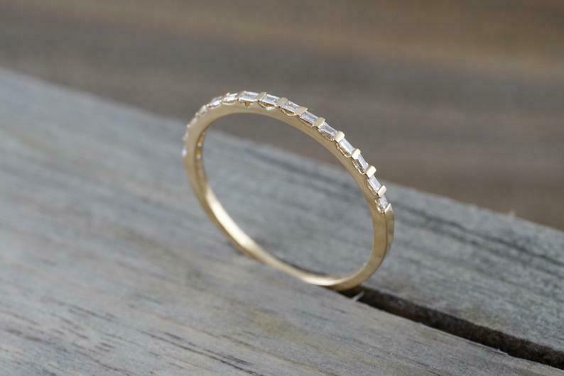 1ct Baguette Cut Diamond Wedding Band Minimalist Eternity 14k Yellow Gold Finish
