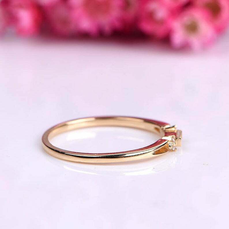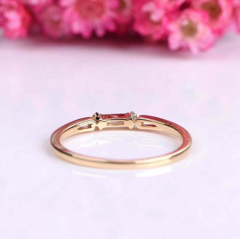 1ct Baguette Cut Diamond Wedding Band Petite Minimalist 14k Yellow Gold Finish