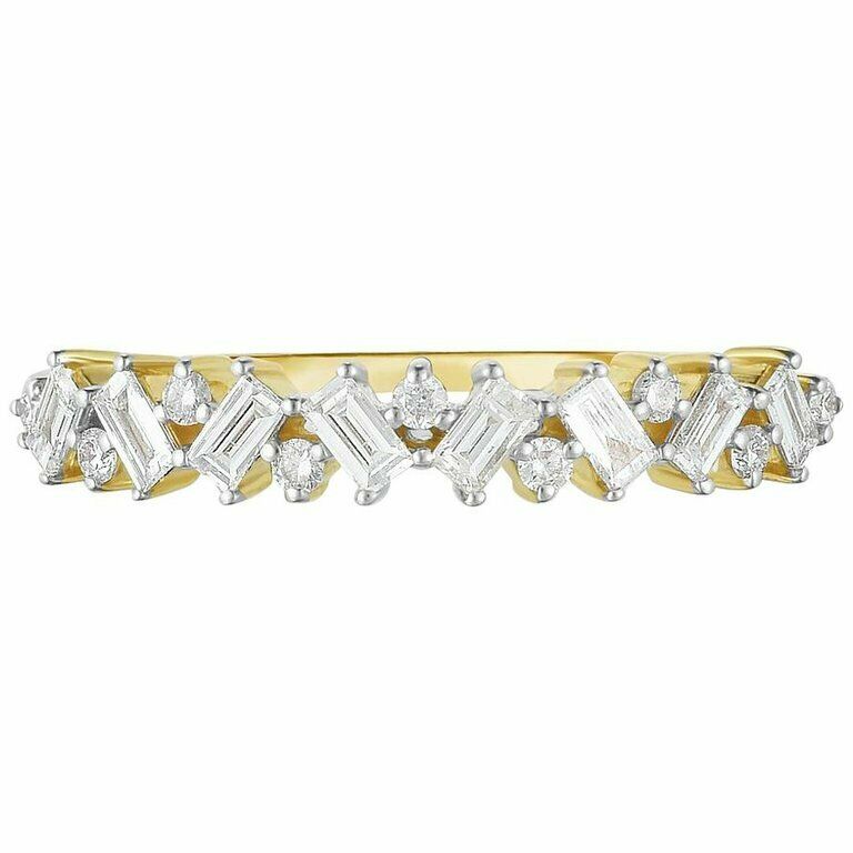 1ct Baguette & Round Cut Diamond Wedding Ring Band Half Eternity 14k Yellow Gold Finish