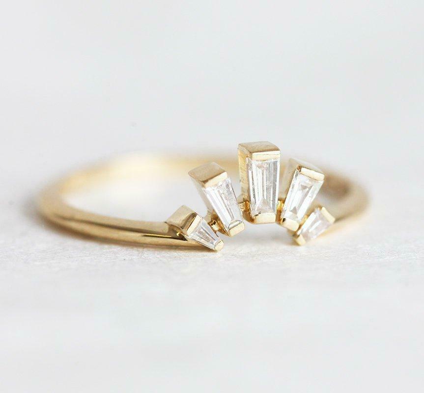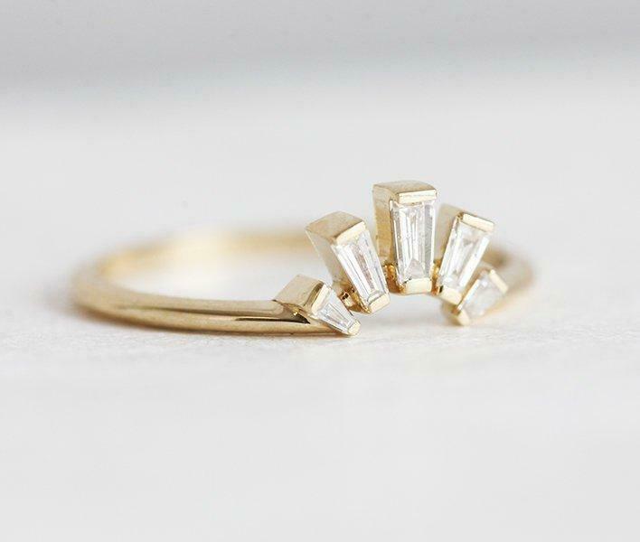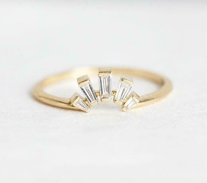 1ct Baguette Cut VVS1 Diamond Engagement Ring Crown Design 14k YellowGold Finish