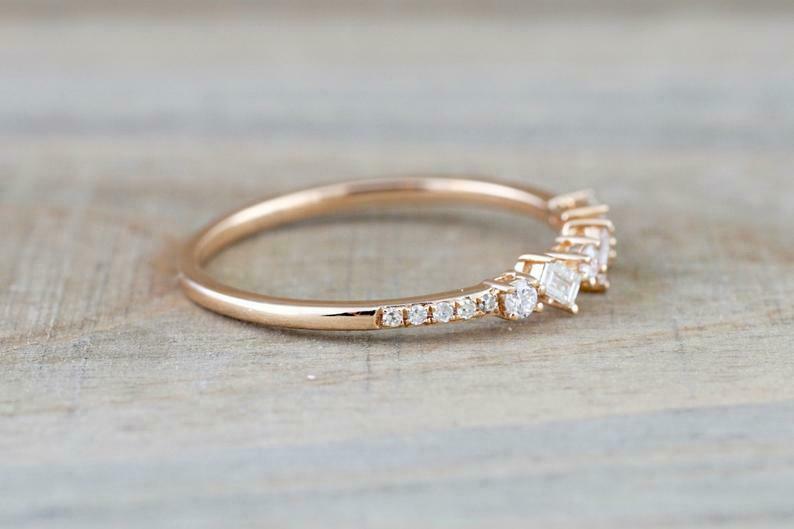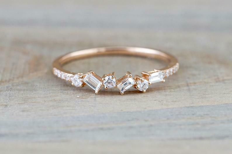 1ct Baguette Cut VVS1 Diamond Wedding Band 14k Rose Gold Finish Dainty Stackable