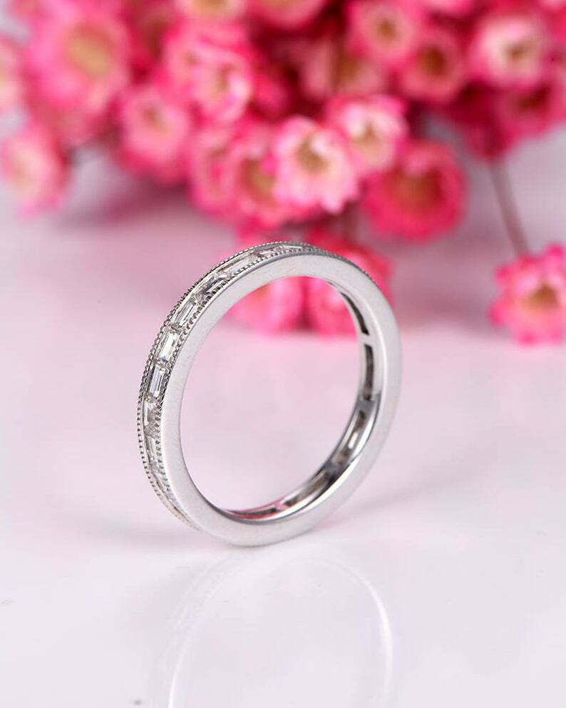 1ct Baguette Cut VVS1D Diamond Wedding Band Full Eternity 14k White Gold Finish