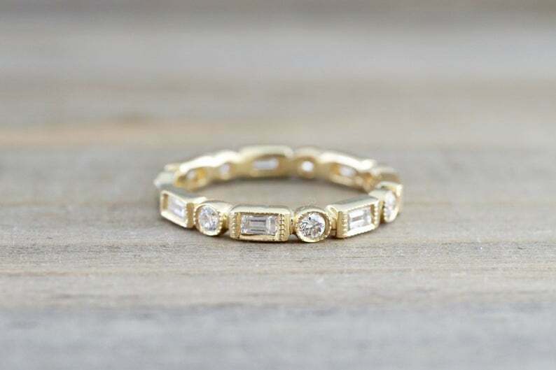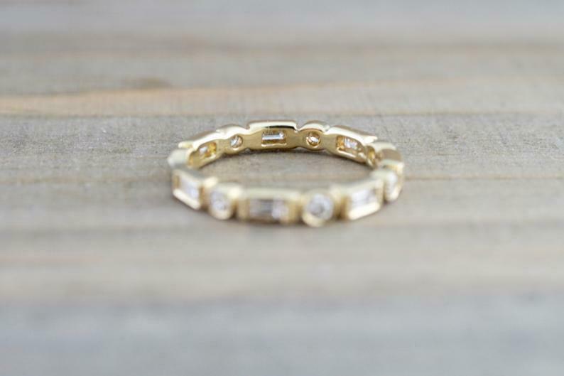1ct Baguette Diamond Wedding Band Stackable Full Eternity 18k Yellow Gold Finish