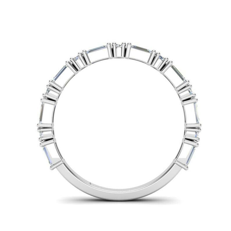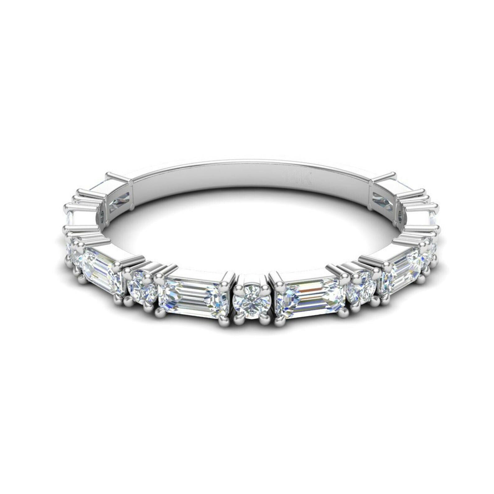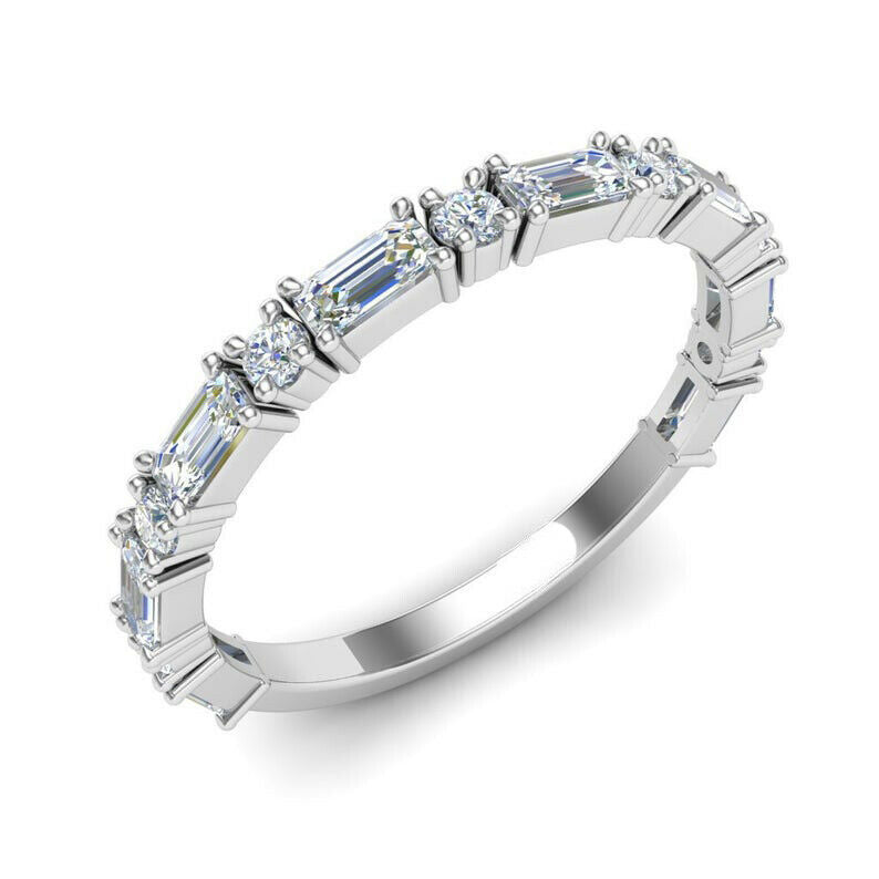 1ct Baguette Round Cut Diamond Wedding Band Half Eternity 18k White Gold Finish