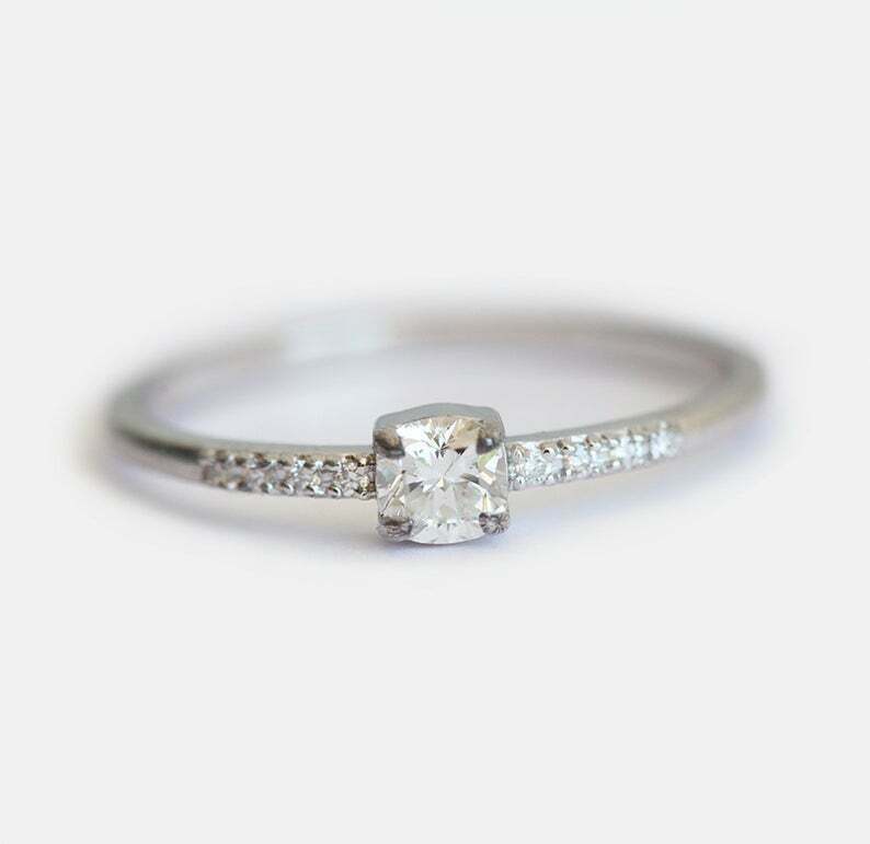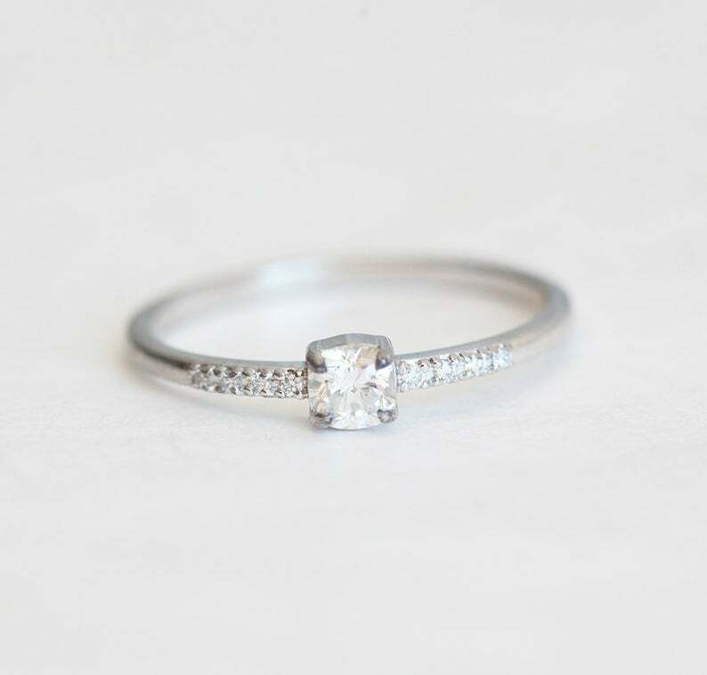 1ct Cushion Cut Diamond Engagement Ring 14k White Gold Over Solitaire with Accent