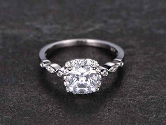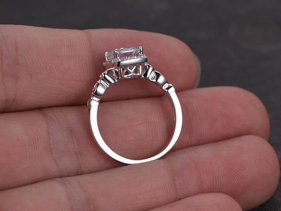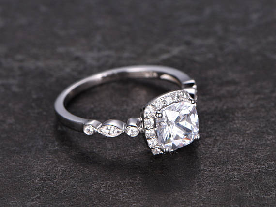 1ct Cushion Cut Diamond Engagement Ring Accent Halo Solitaire 14k Rose Gold Over