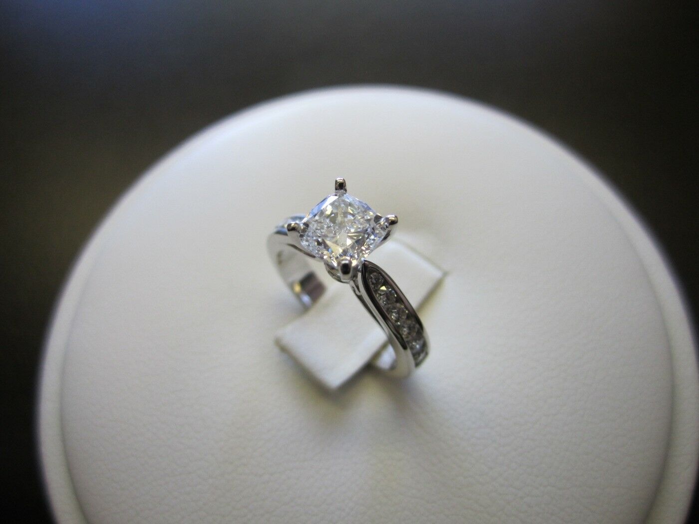 1ct Cushion Cut Diamond Solitaire Accent Engagement Ring 14k White Gold Finish