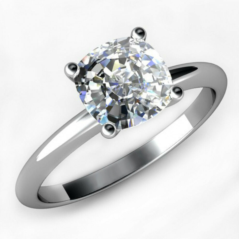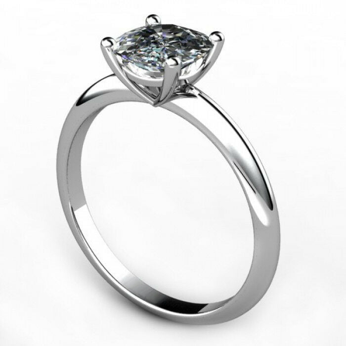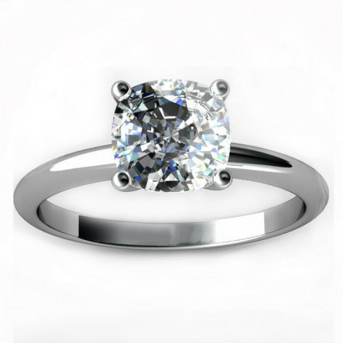 1ct Cushion Cut Diamond Unique Solitaire Engagement Ring 14k White Gold Finish