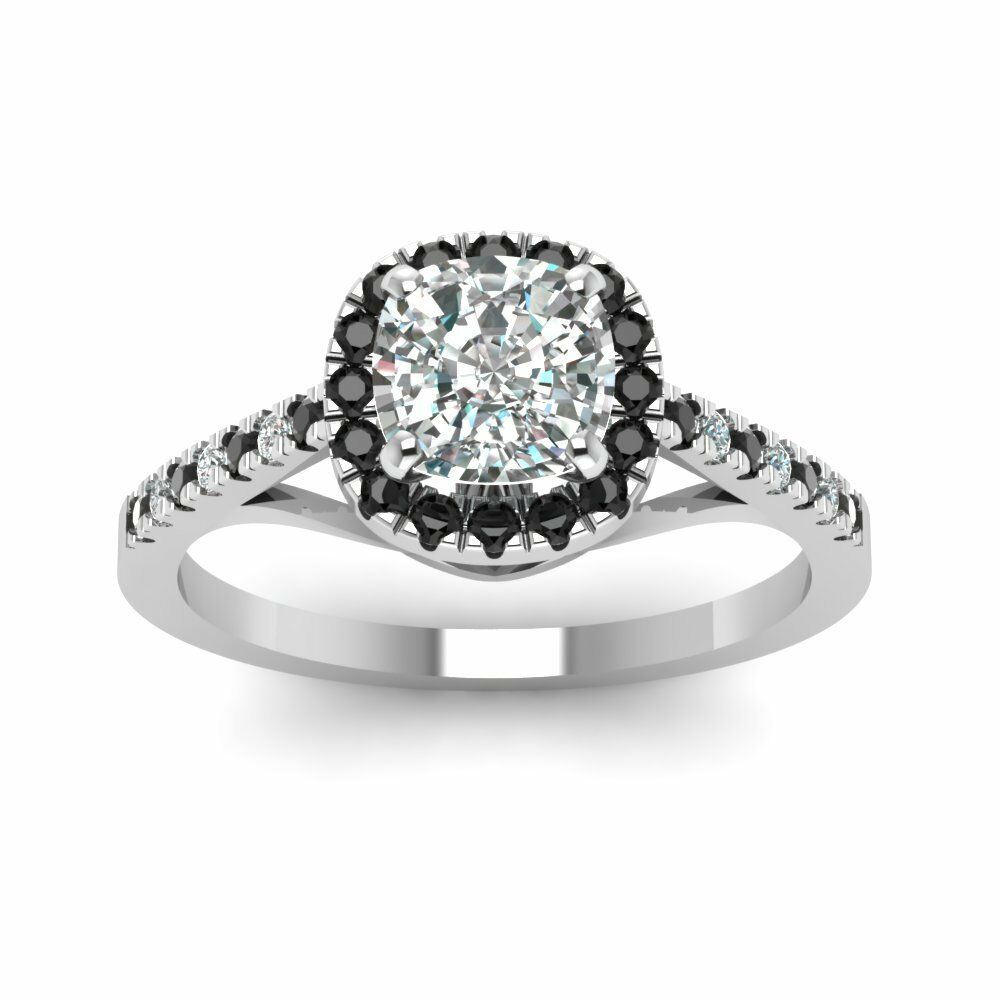 1ct Cushion Diamond Black Accent Solitaire Engagement Ring 14k White Gold Finish