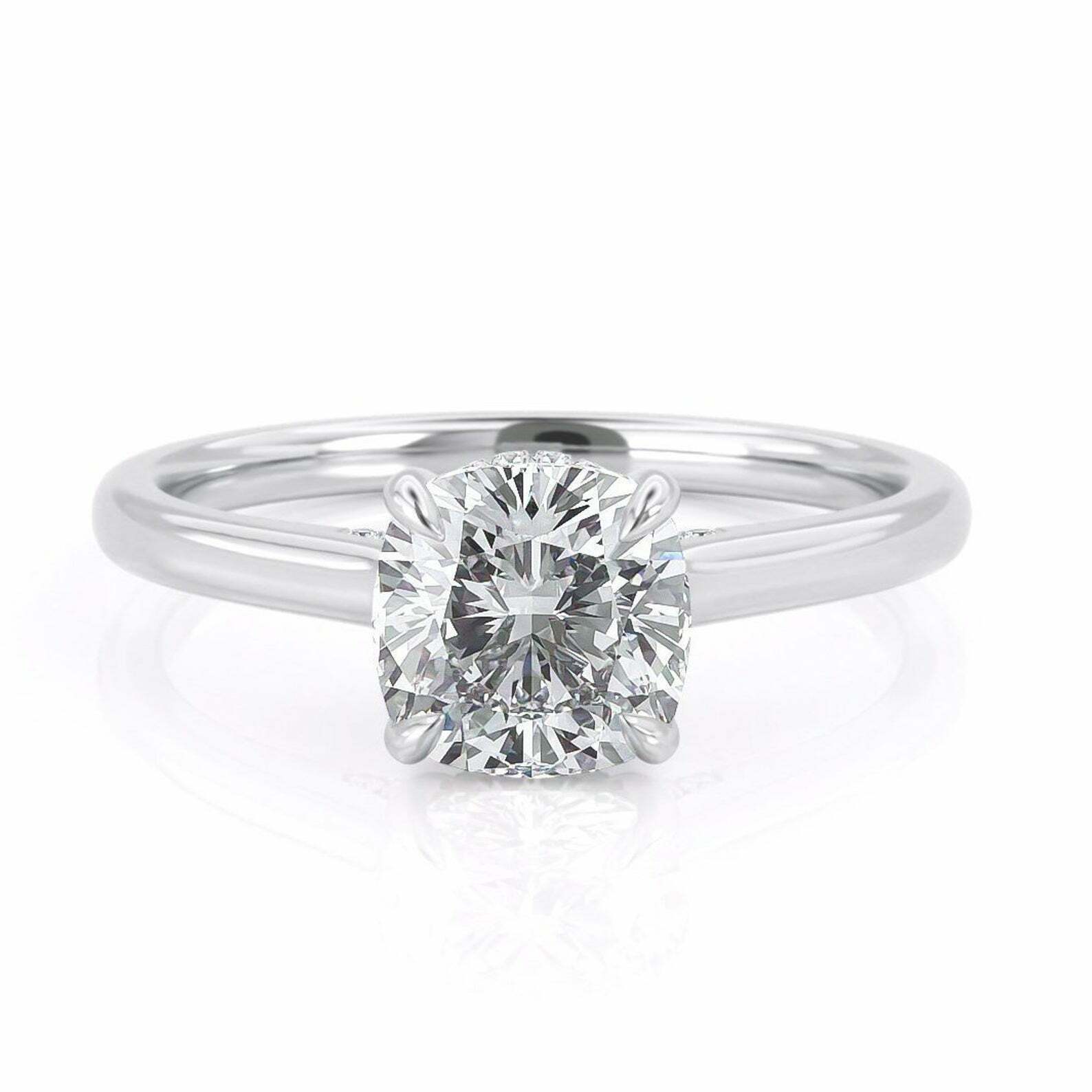 1ct Cushion Cut Diamond Engagement Ring Classic 4 Prong Solitaire 14k White Gold Over