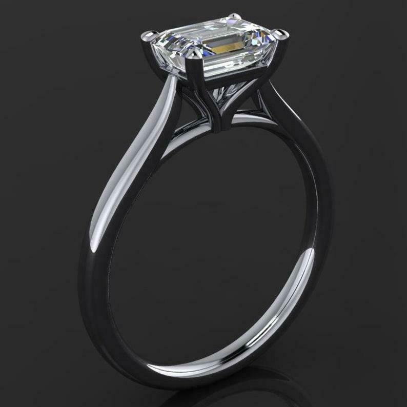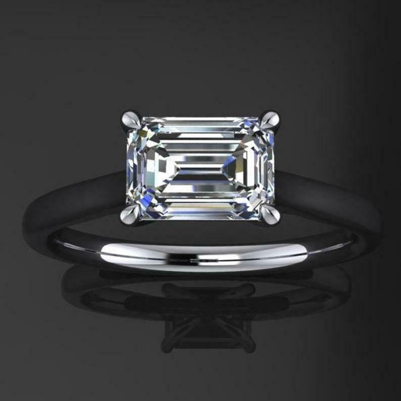 1ct Emerald Cut Diamond Engagement Ring 14k White Gold Finish East West Solitaire