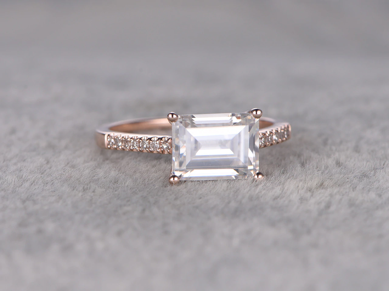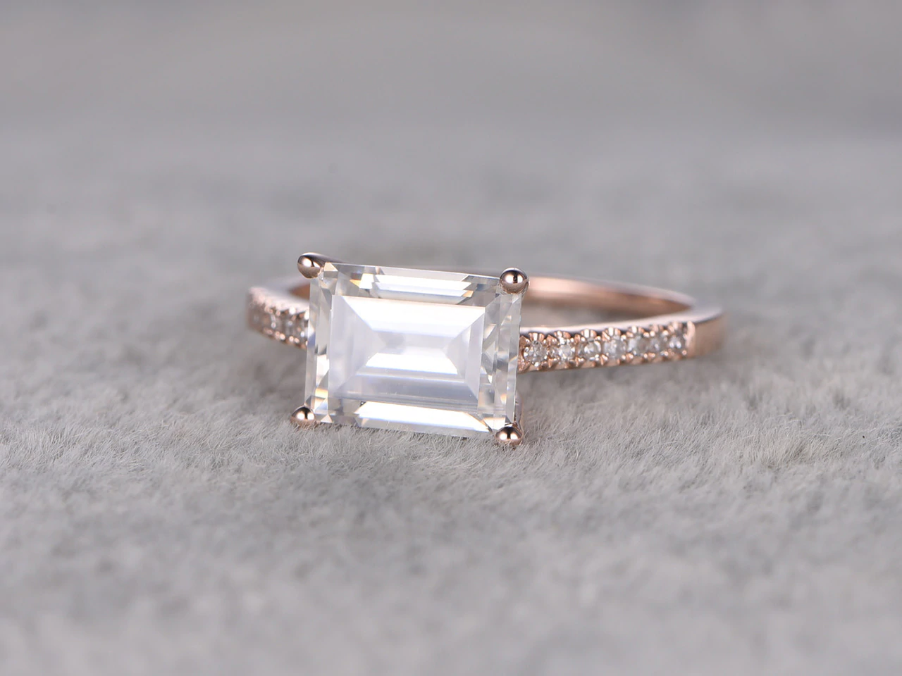 1ct Emerald Cut Diamond Engagement Ring Accents Solitaire 14k Rose Gold Finish