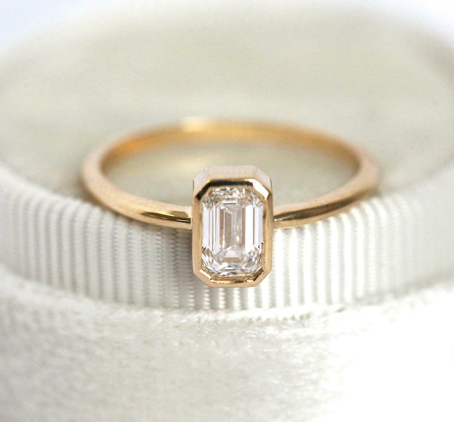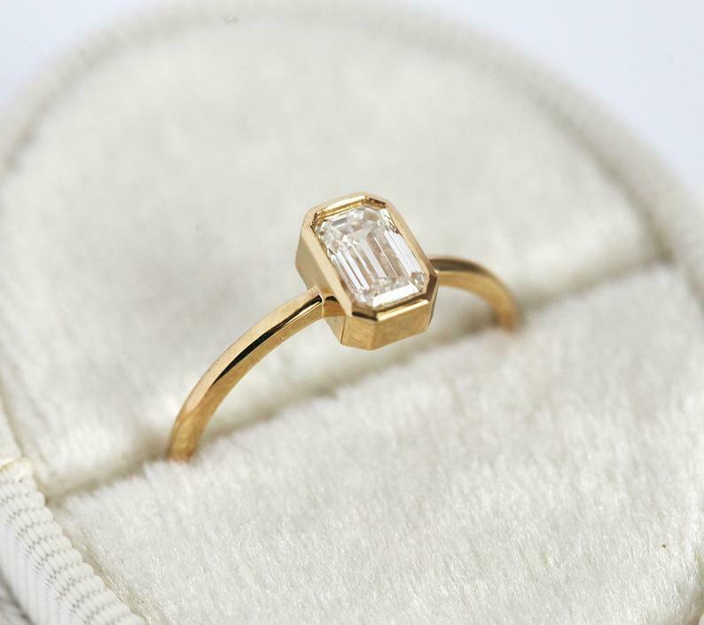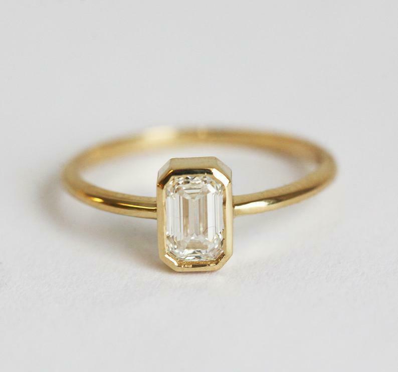 1ct Emerald Cut Diamond Engagement Ring Bezel Set Solitaire 14k Yellow Gold Over