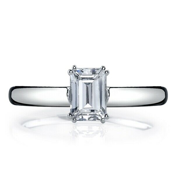 1ct Emerald Cut Diamond Engagement Ring Dual Prong Solitaire 14k White Gold Over