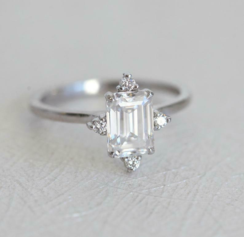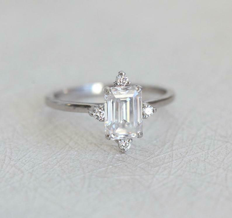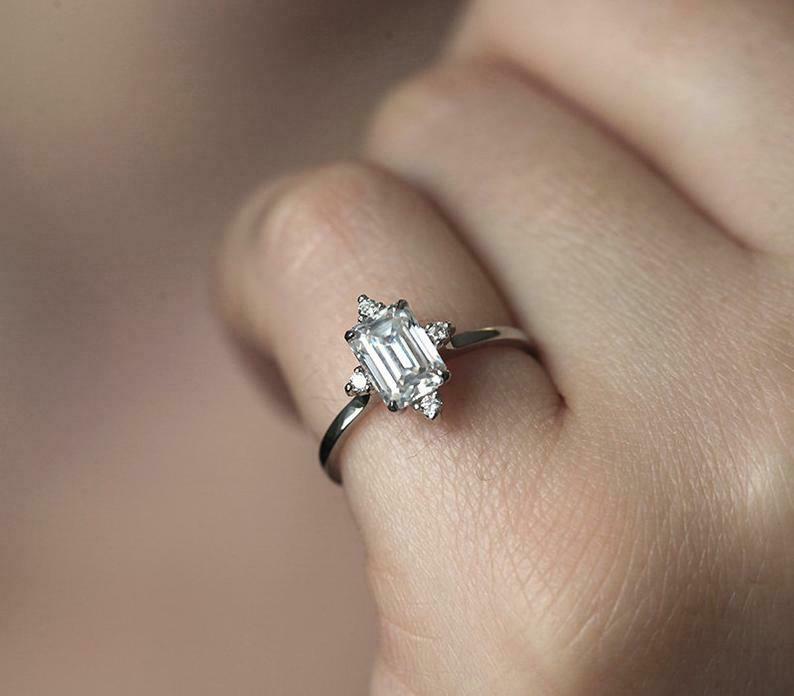 1ct Emerald Cut Diamond Engagement Ring Stylish Solitaire 14k White Gold Finish