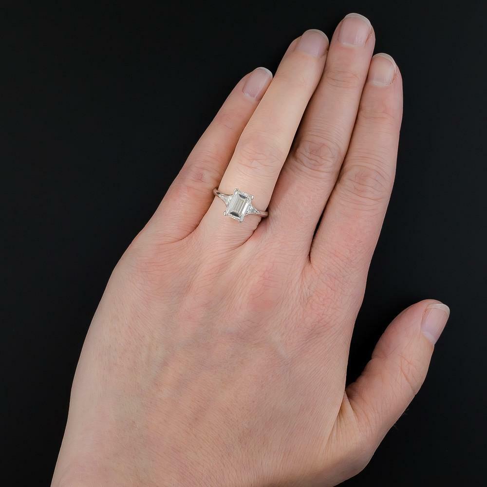 1ct Emerald Cut Diamond Trillion Solitaire Engagement Ring 14k White Gold Finish