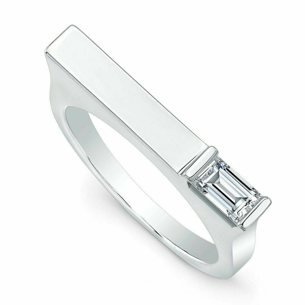 1ct Emerald Cut VVS1/D Diamond Match Stick Engagement Ring 14K White Gold Over