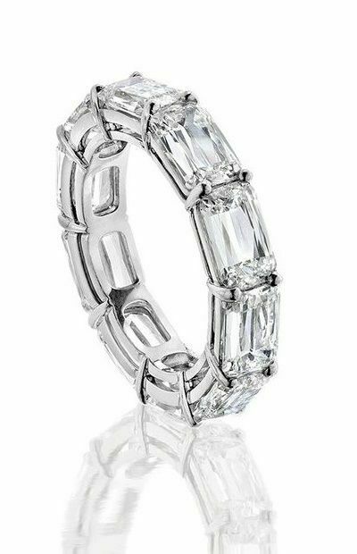 1ct Emerald Cut VVS1D Diamond Eternity Wedding Ring Band 14k White Gold Finish