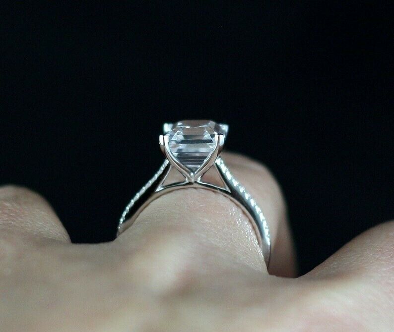 1ct Emerald Cut Diamond Engagement Ring Round Accent Solitaire 14k White Gold Finish