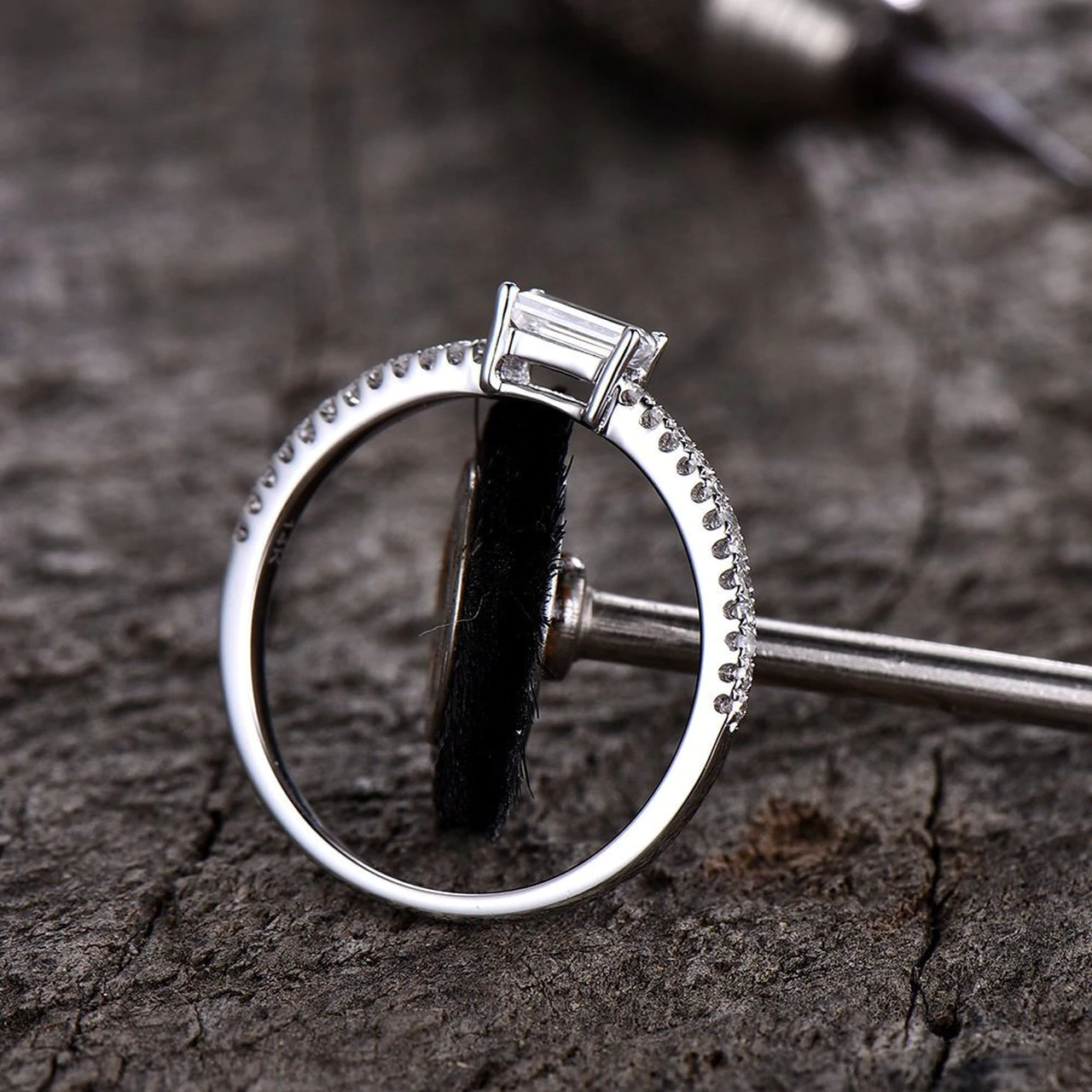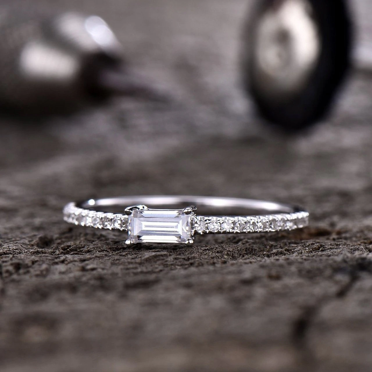 1ct Engagement Ring Baguette Cut Diamond Accent Solitaire 14k White Gold Finish