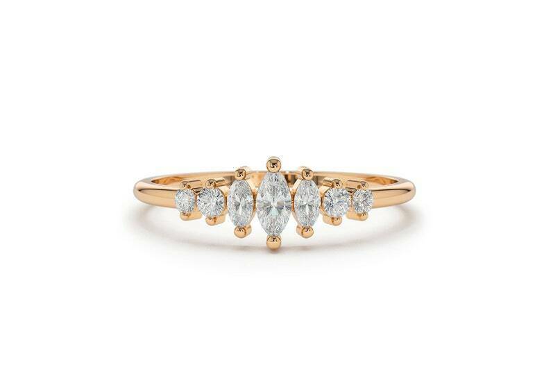 1ct Engagement Ring Marquise Cut Diamond Minimalist Design 14k Rose Gold Finish