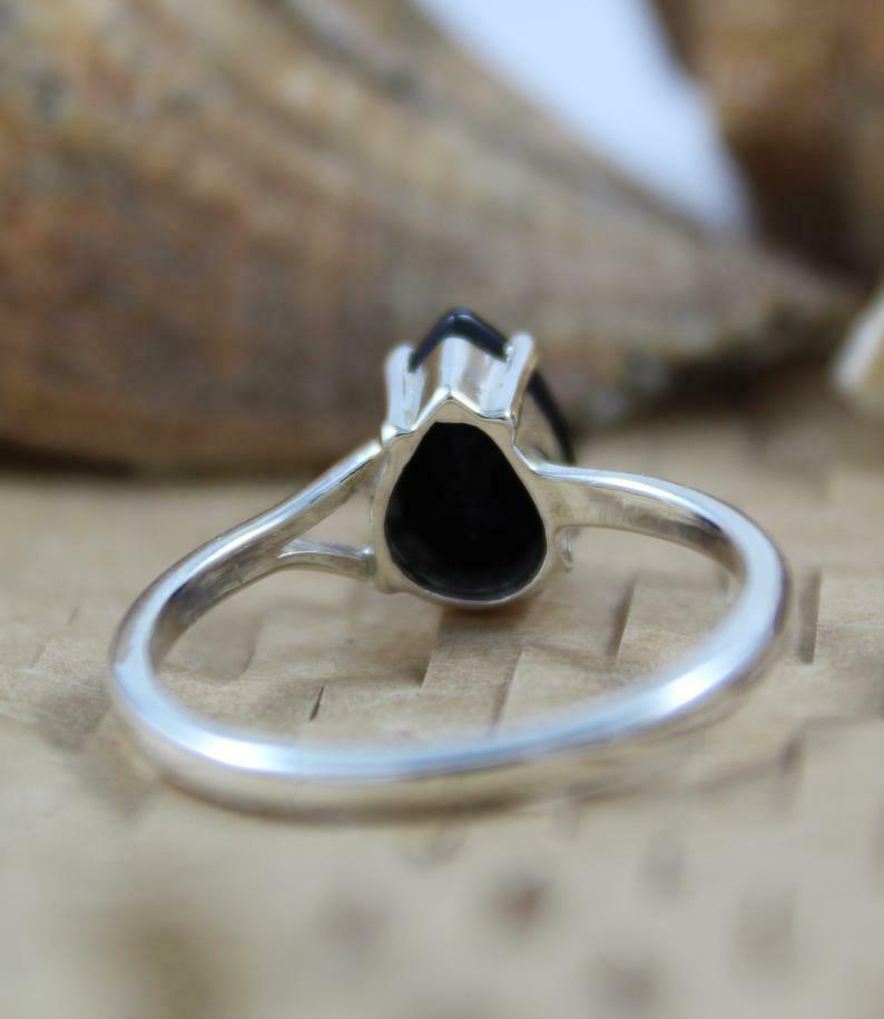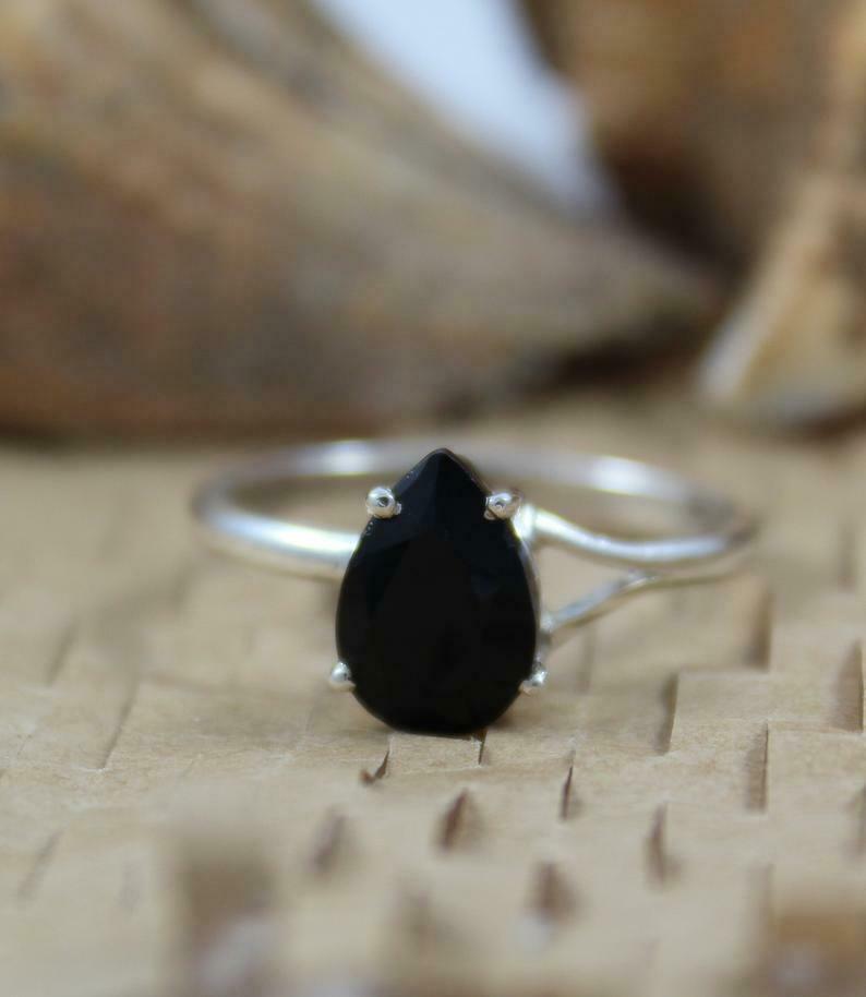 1ct Engagement Ring Pear Cut Black Diamond Solitaire Women 14k White Gold Finish