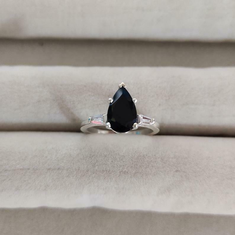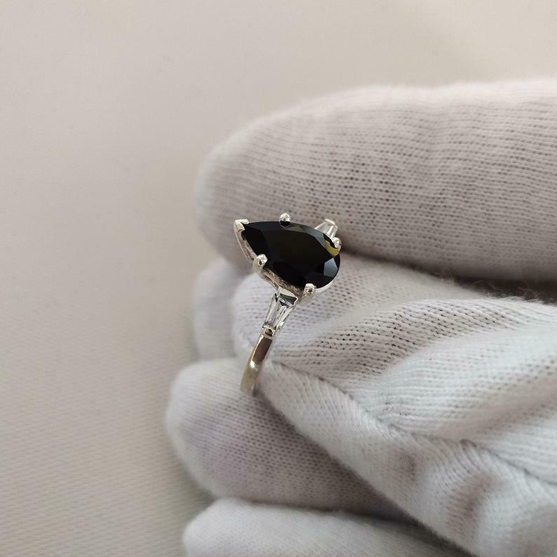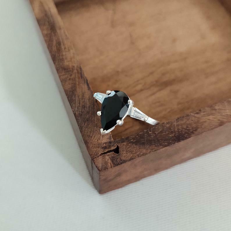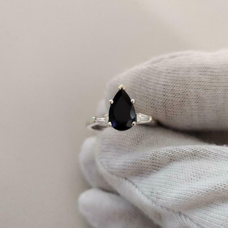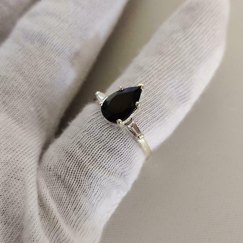 1ct Engagement Ring Pear Cut Black Diamond Trilogy Women 14k White Gold Finish