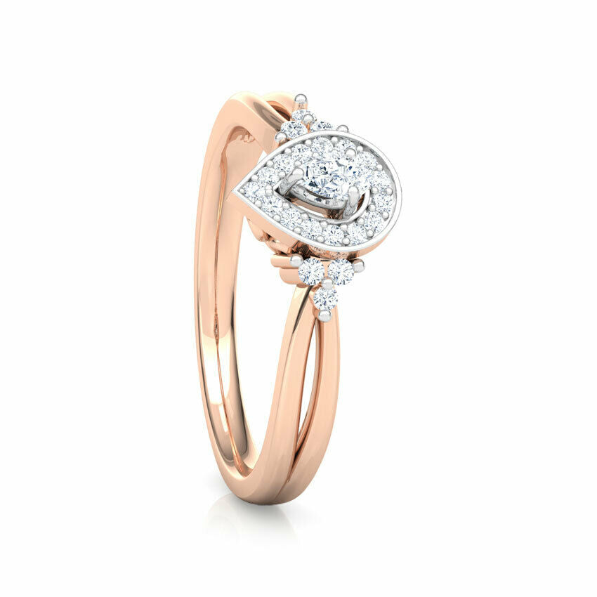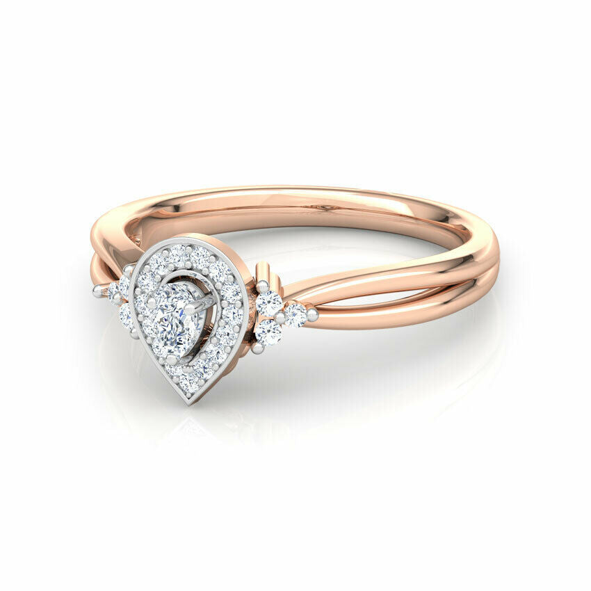 1ct Engagement Ring Pear Cut Diamond Halo Split Shank Design 14k RoseGold Finish