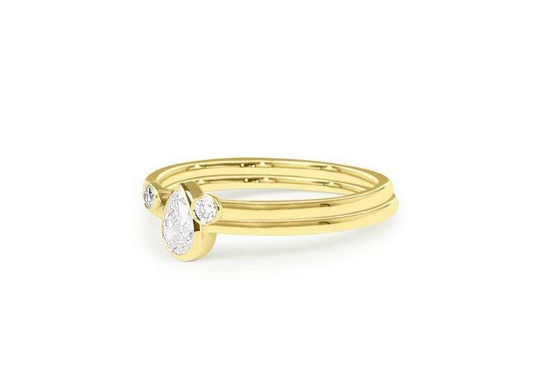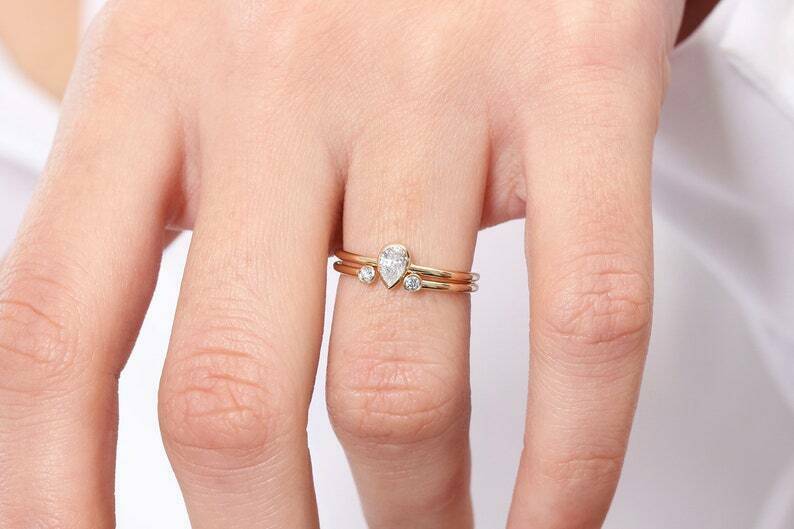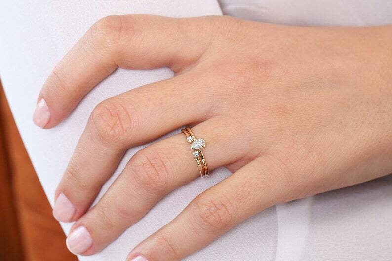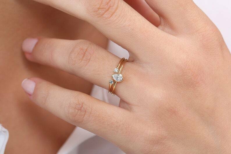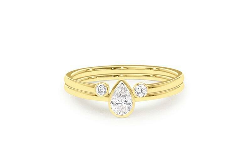 1ct Engagement Ring Pear Cut Diamond Open Band Bridal Set 14k Yellow Gold Finish