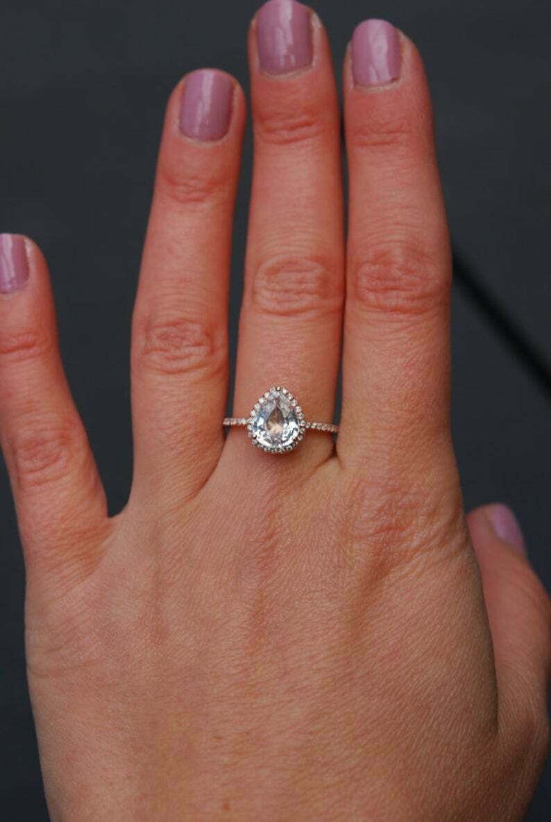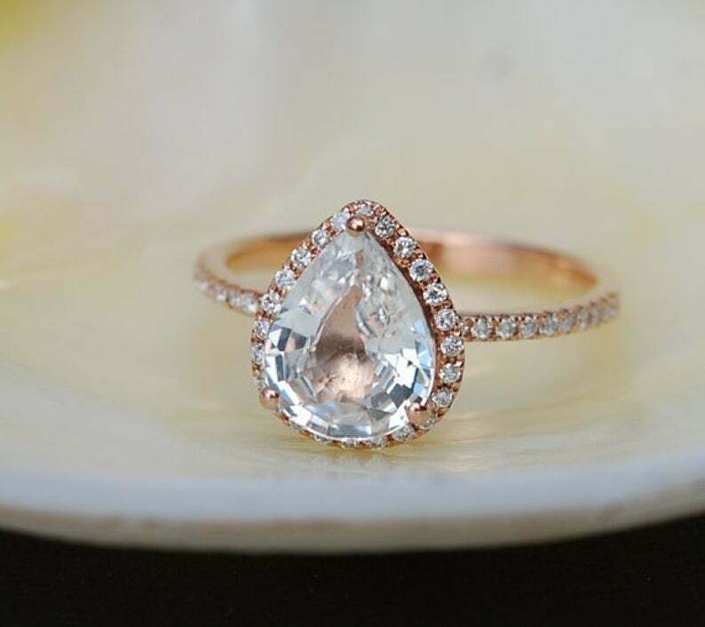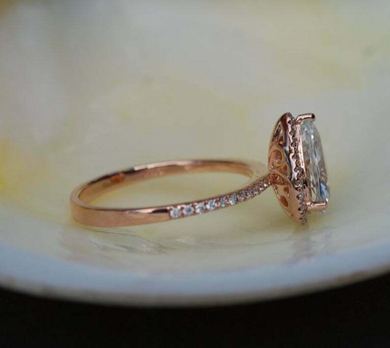 1ct Engagement Ring Pear Cut Diamond Round Accent Halo 14k Rose Gold Finish