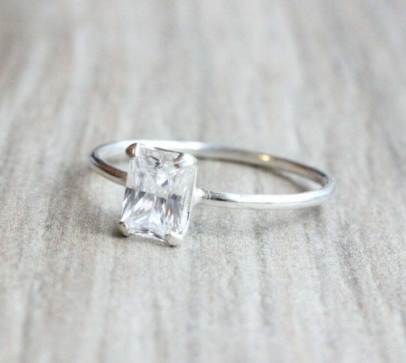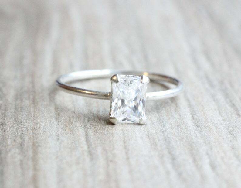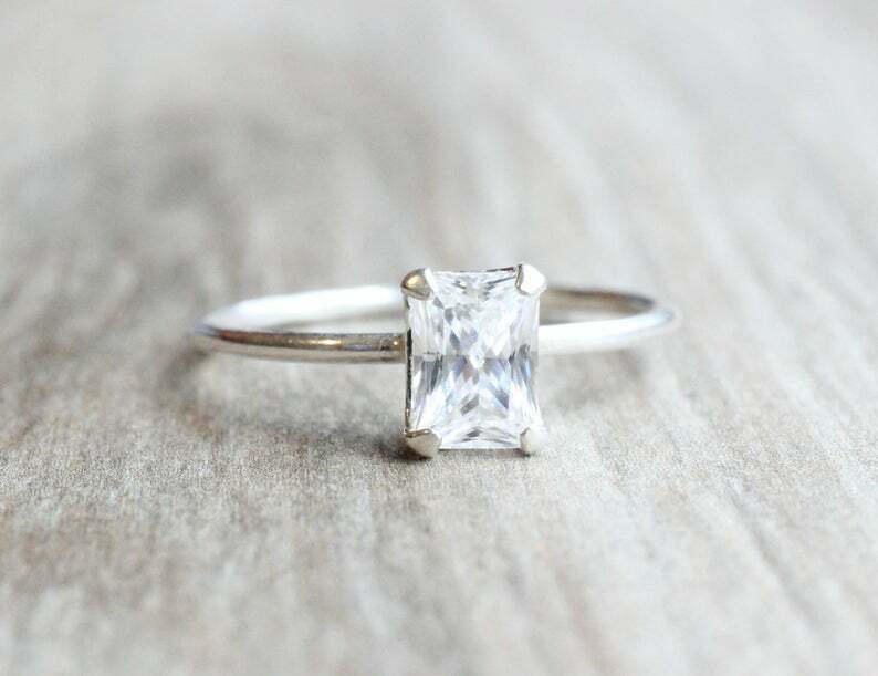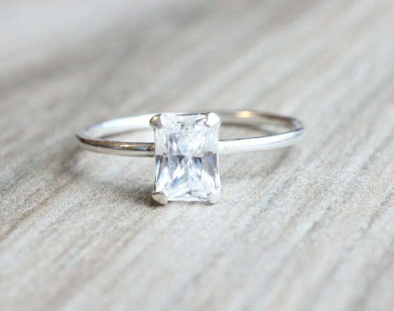 1ct Engagement Ring Radiant Cut Diamond Solitaire Design 14k White Gold Finish