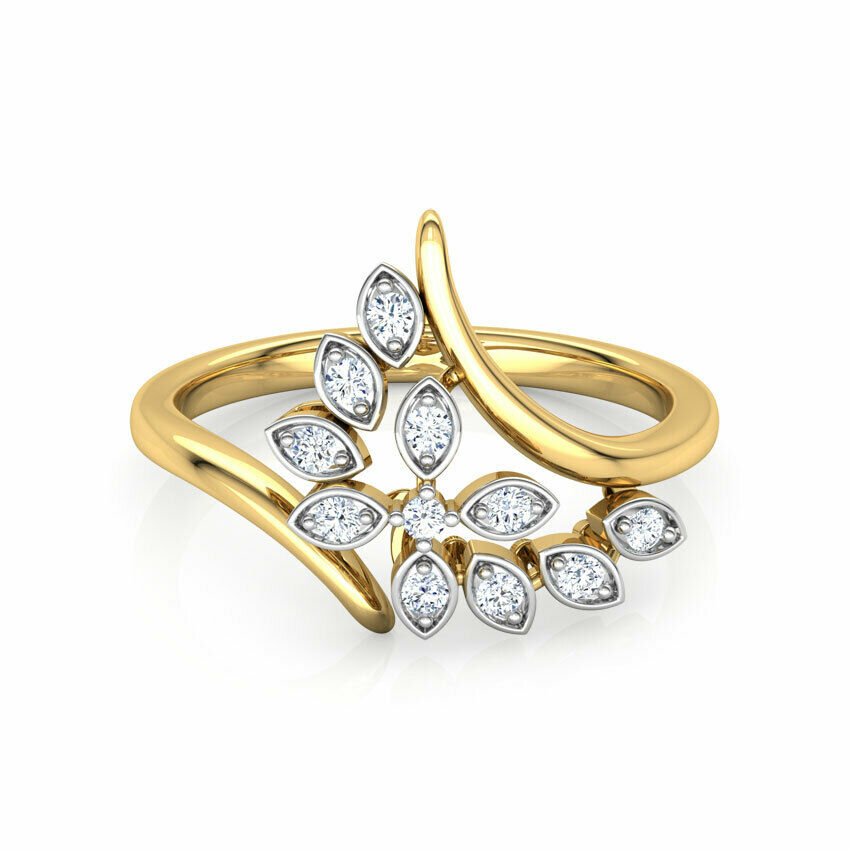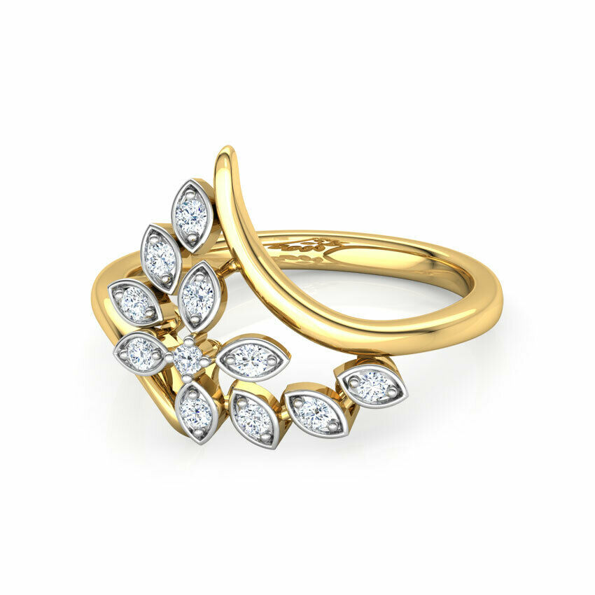 1ct Engagement Ring Round Cut Diamond Leaf Bypass Design 14k Yellow Gold Finish