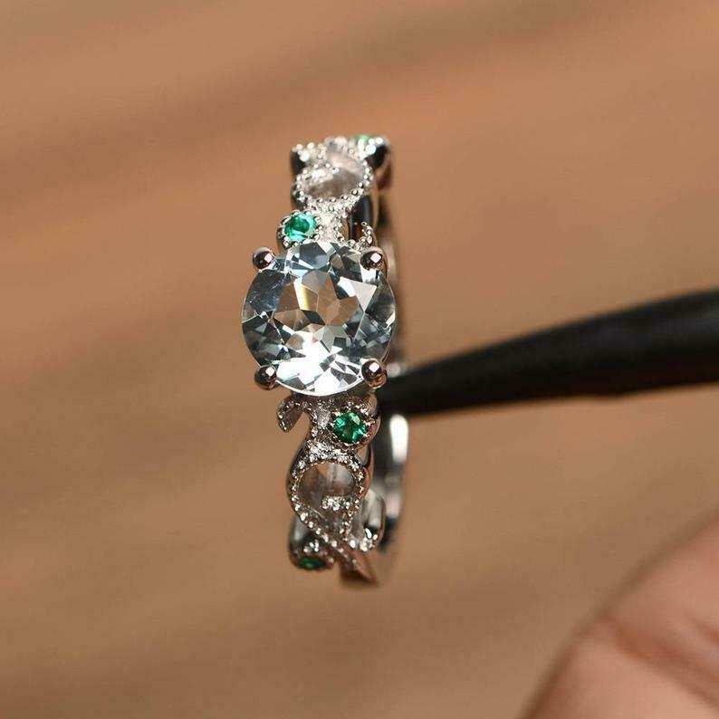 1ct Engagement Ring Round Cut Diamond Milgrain Floral 14k White Gold Finish