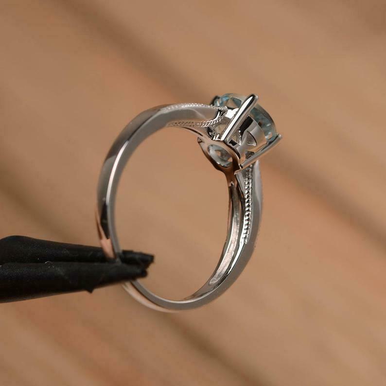 1ct Engagement Ring Round Cut Diamond Solitaire Milgrain 14k White Gold Finish