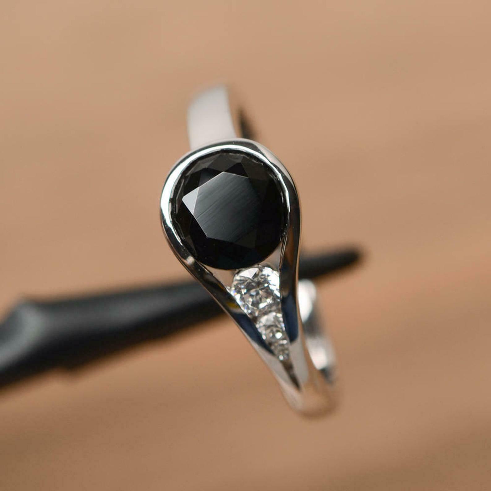 1ct Engagement Ring Round Cut Black Diamond Stylish Channel Set 14k White Gold Finish