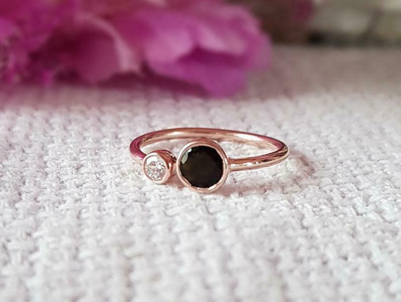 1ct Engagement Ring Round Cut Diamond Two Stone Minimalist 14k Rose Gold Finish