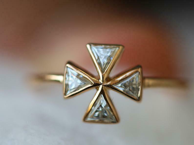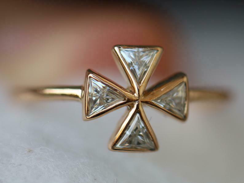 1ct Engagement Ring Trillion Cut Diamond Celtic Cross 14k Yellow Gold Finish