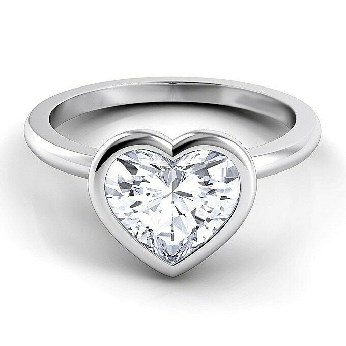 1Ct Heart Cut Diamond Bezel Set Solitaire Engagement Ring 14K White Gold Finish