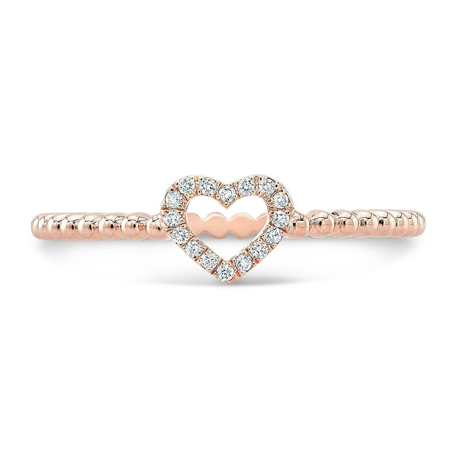 1ct Heart Cut Diamond Engagement Ring Open Heart Bead Shank 14k Rose Gold Finish