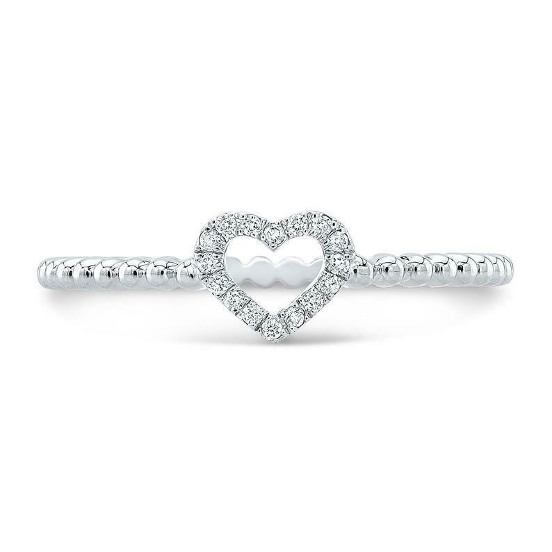 1ct Heart Cut Diamond Engagement Ring Open Heart Bead Shank 14k WhiteGold Finish