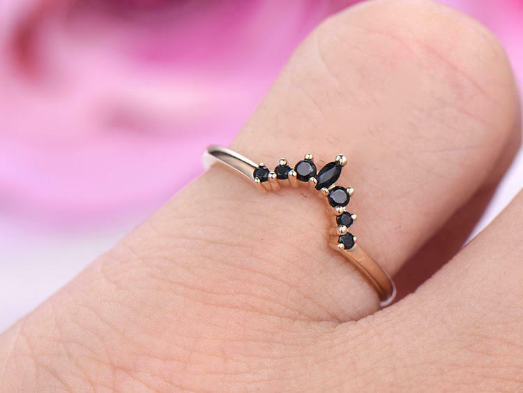 1ct Marquise Cut Black Diamond Stackable Curved Crown Ring 14k Rose Gold Finish