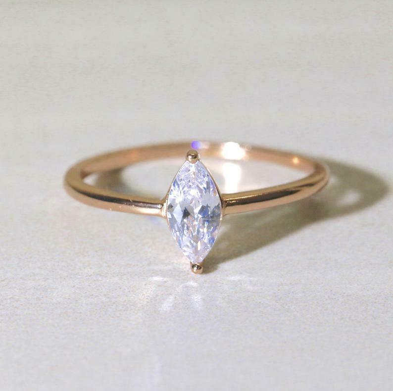 1ct Marquise Cut Diamond Engagement Ring Dainty Stackable 14k Rose Gold Finish