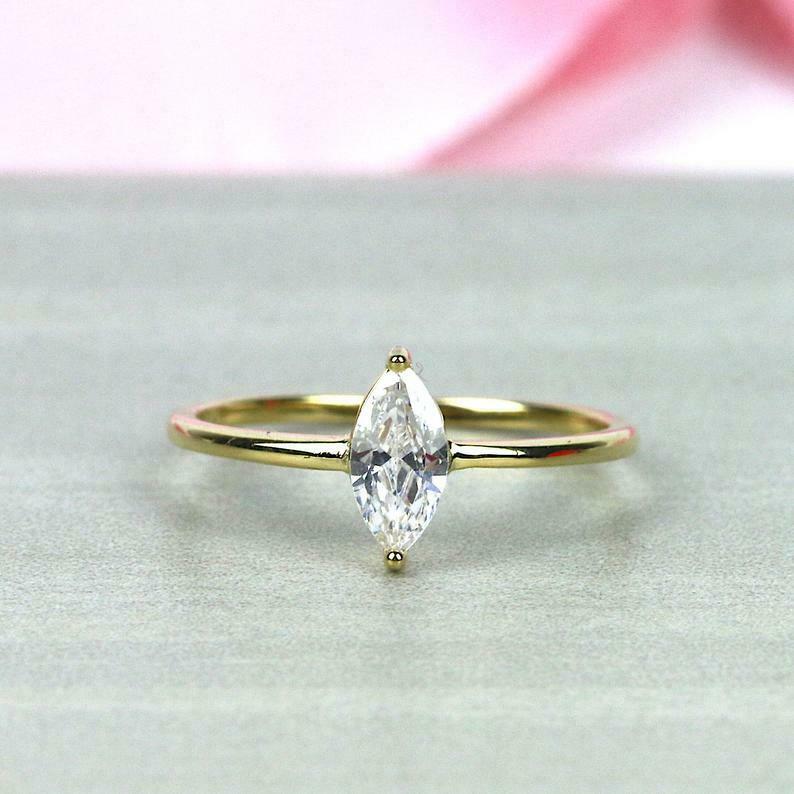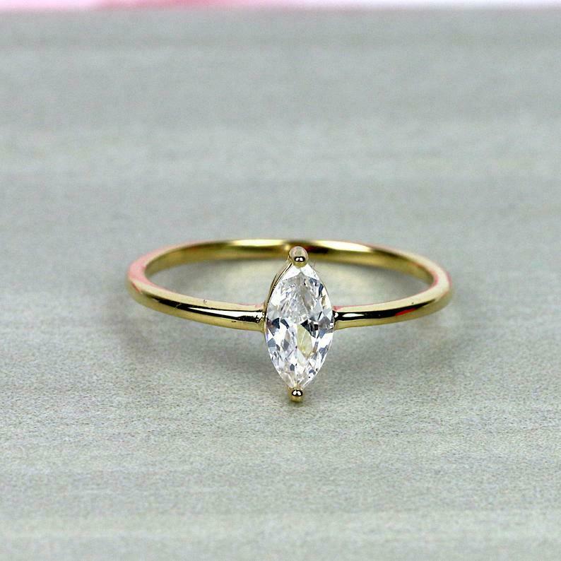 1ct Marquise Cut Diamond Engagement Ring Dainty Stackable 14k Yellow Gold Finish