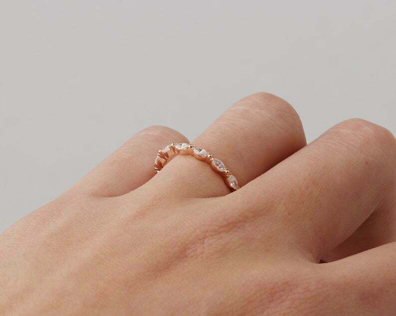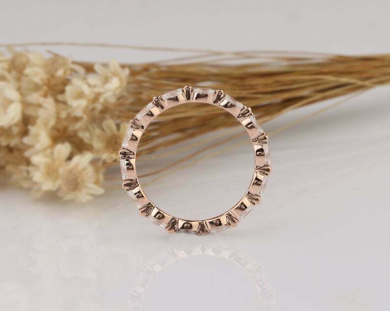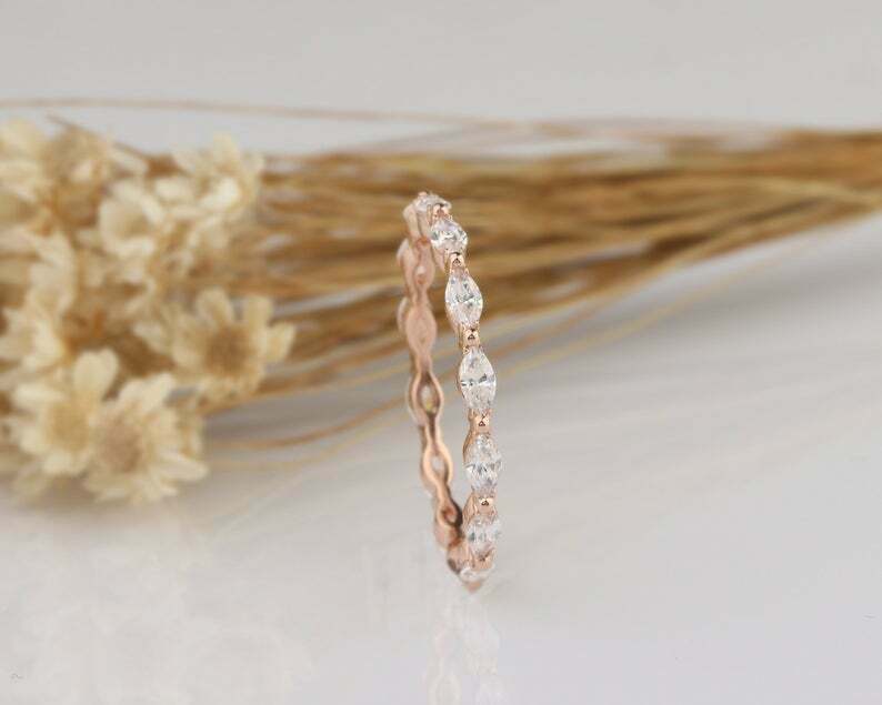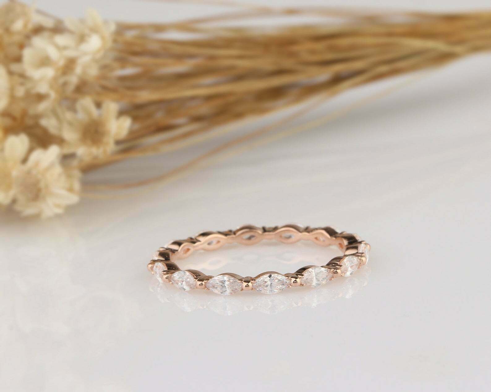 1ct Marquise Cut Diamond Wedding Band Single Prong Eternity 14k Rose Gold Finish