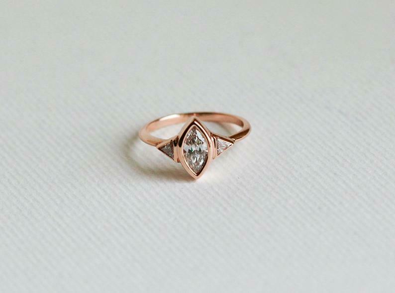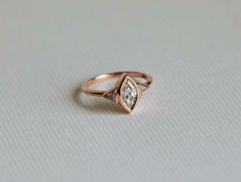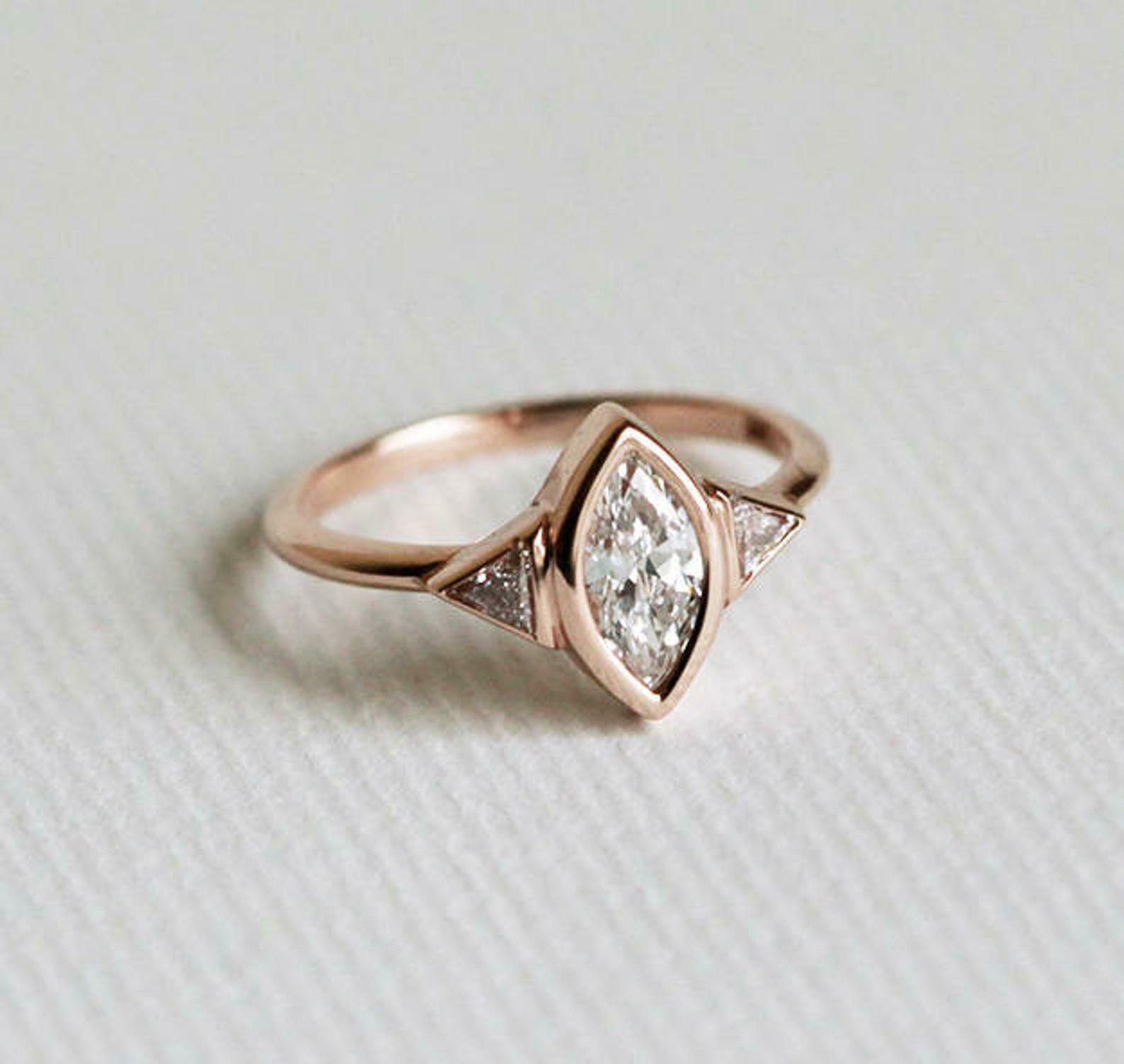 1ct Marquise Cut Diamond Trillion Accents Trilogy Engagement Ring 14k Rose Gold Over
