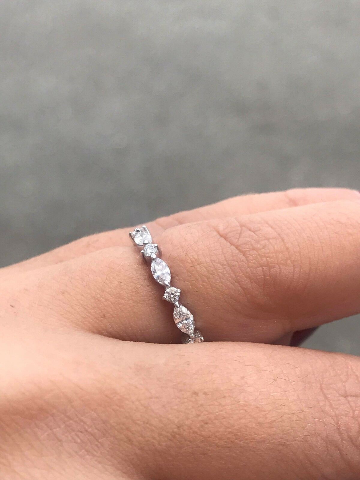 1ct Marquise Round Cut Diamond Minimalist Eternity Ring Band 14k White Gold Over