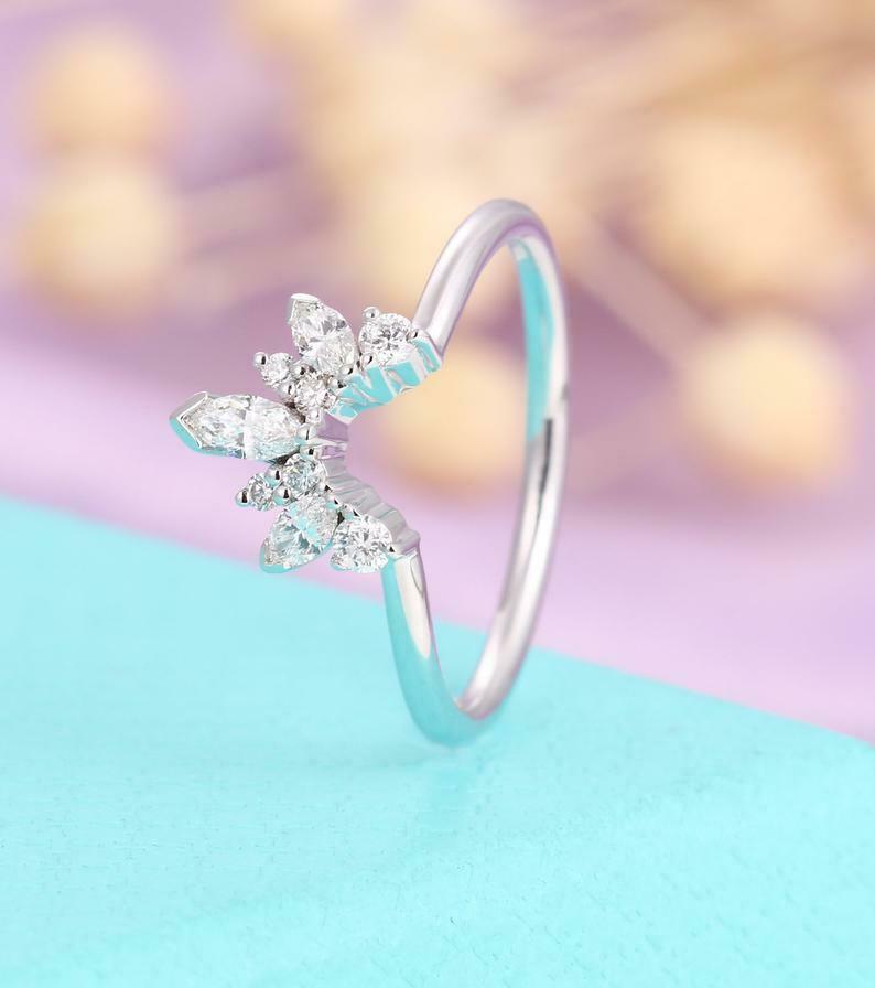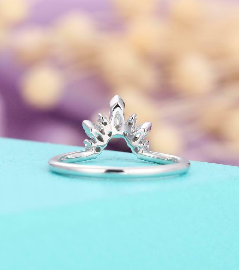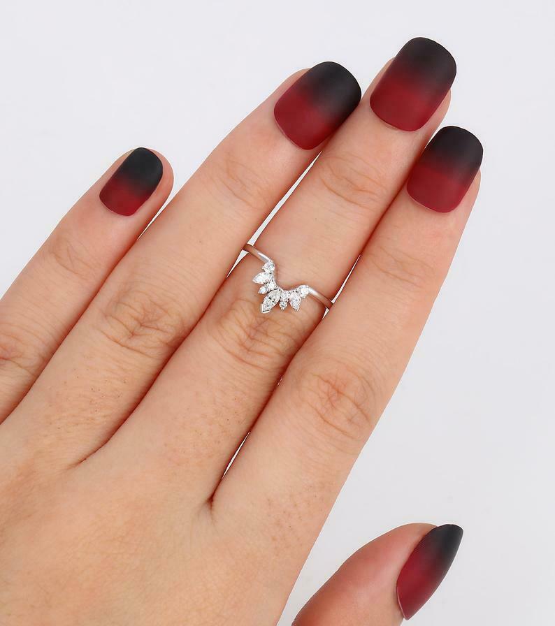 1ct Marquise Round Cut Diamond Wedding Band Curved Stackable 14k White Gold Over