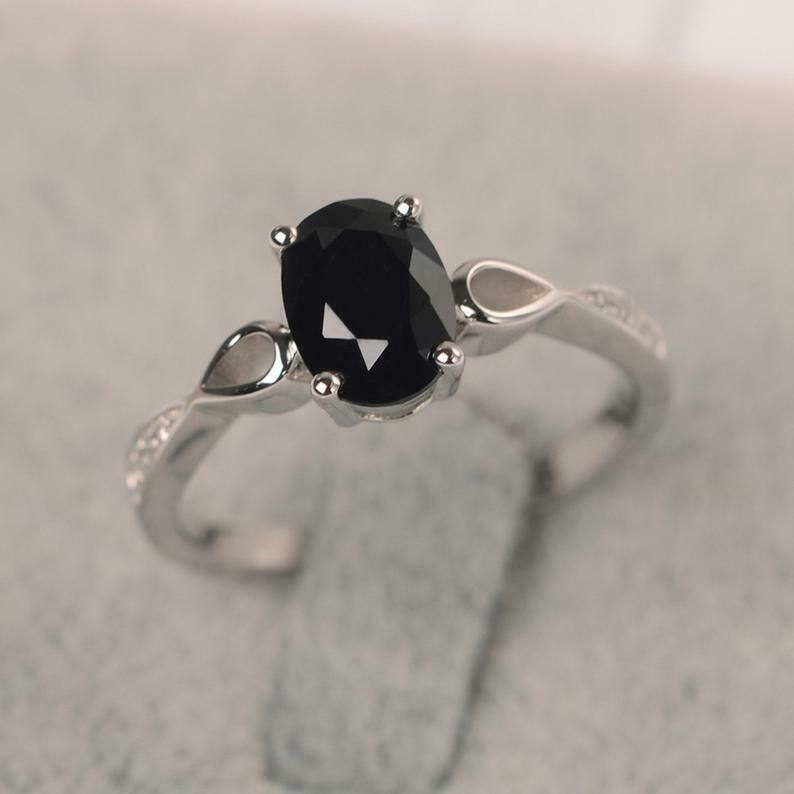 1ct Oval Cut Black Diamond Solitaire Infinity Shank Ring 14k White Gold Finish