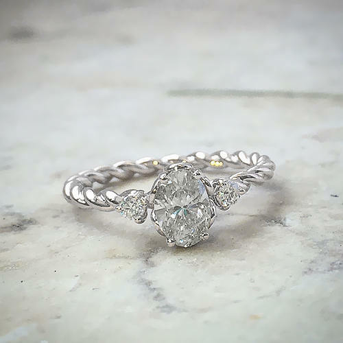 1ct Oval Cut Diamond Braided Band Trilogy Engagement Ring 14k White Gold Finish